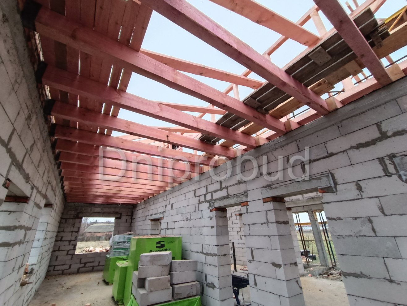 Перекрытия деревянные, а кровля выполнена из металлочерепицы.