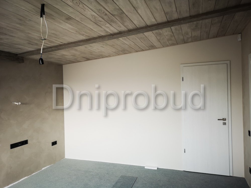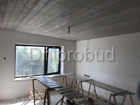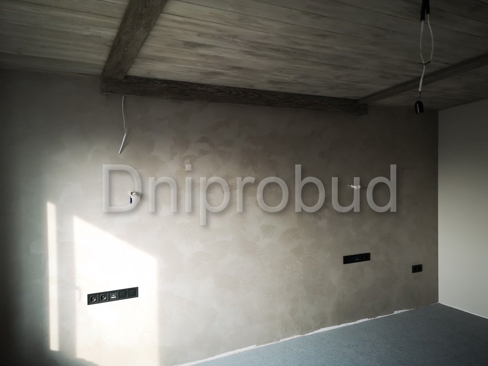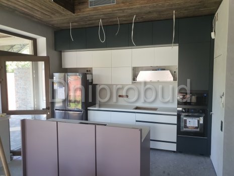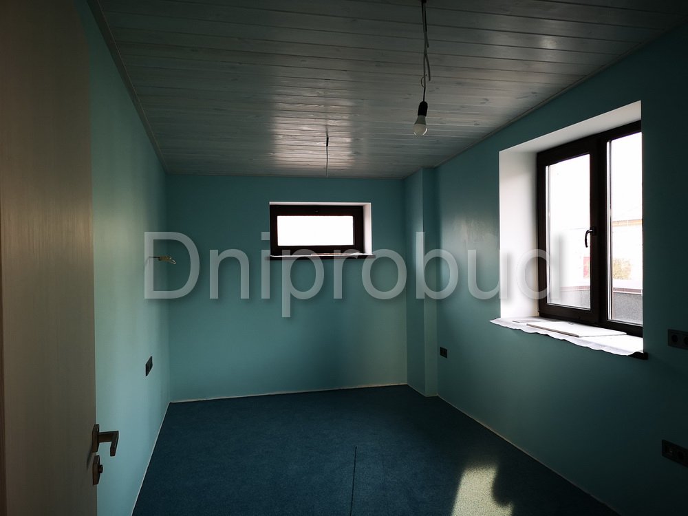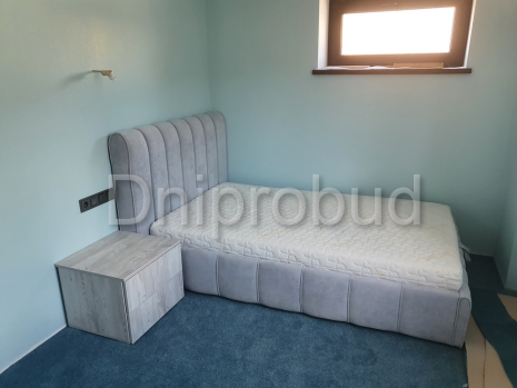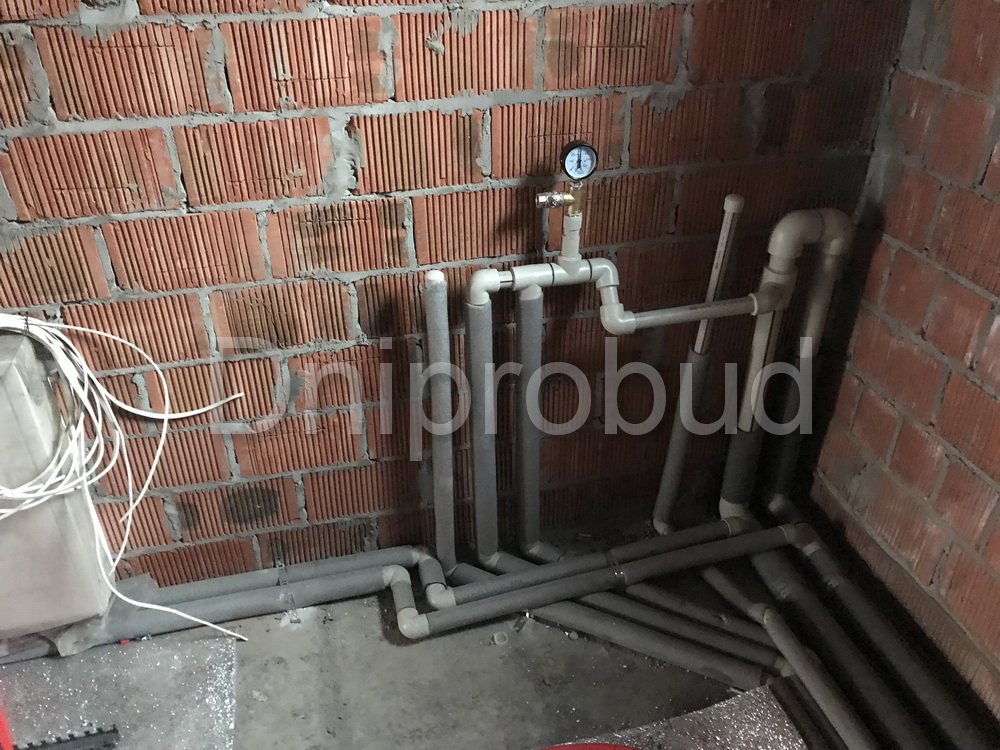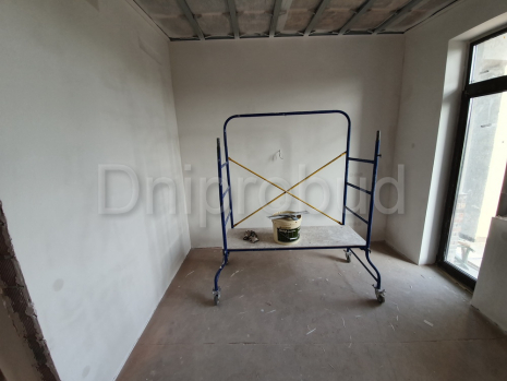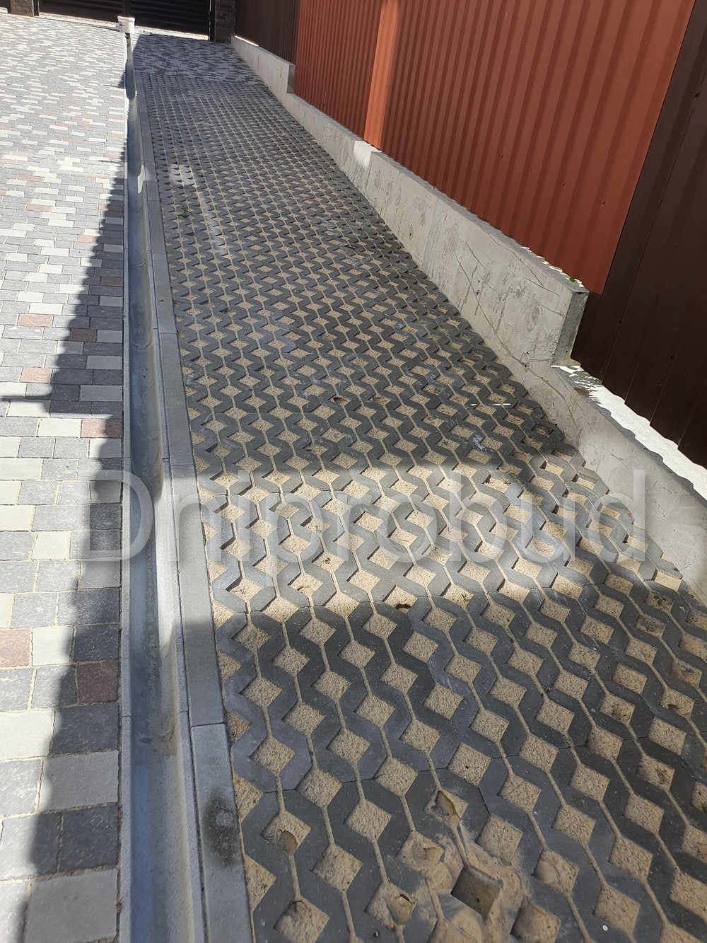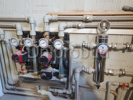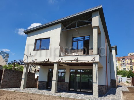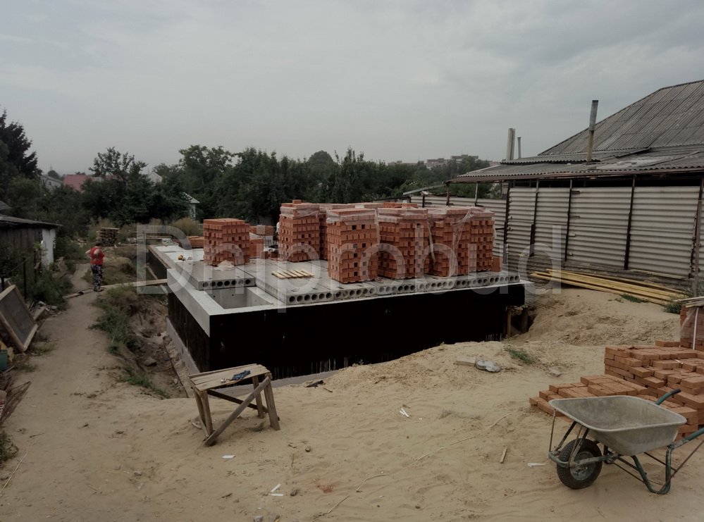 Современный котедж на левом берегу р. Днепр. Строительство осуществлялось на сложных грунтах с высоким уровнем грунтовых вод, что является характерной особенностью данного района г. Днепр. Были проведены работы по обустройству дренажной системы (дренажные трубы, канал из щебня, переливные колодцы). Также проведены дополнительные меры по гидроизоляции фундамента, особенно его цокольной части: гидроизоляция выполнялась наплавлением рубероида, использование для цокольной части фундамента гидротехнического бетона водонепроницаемости W6.