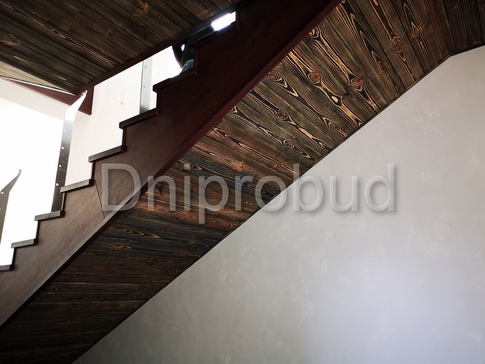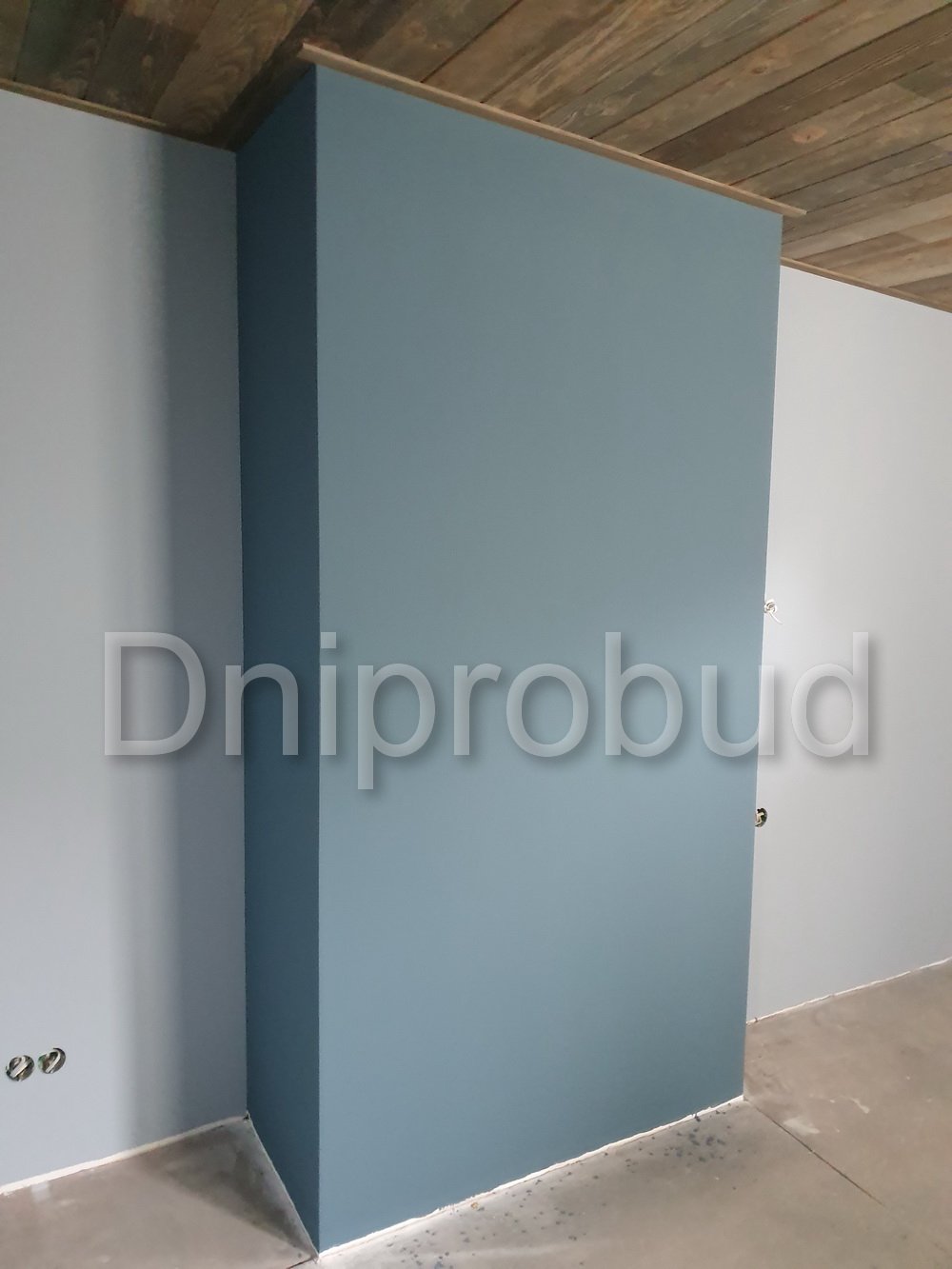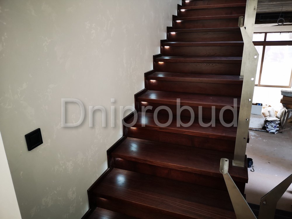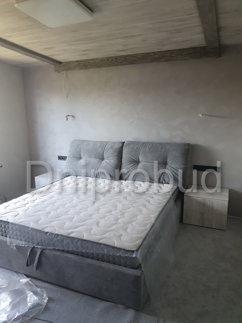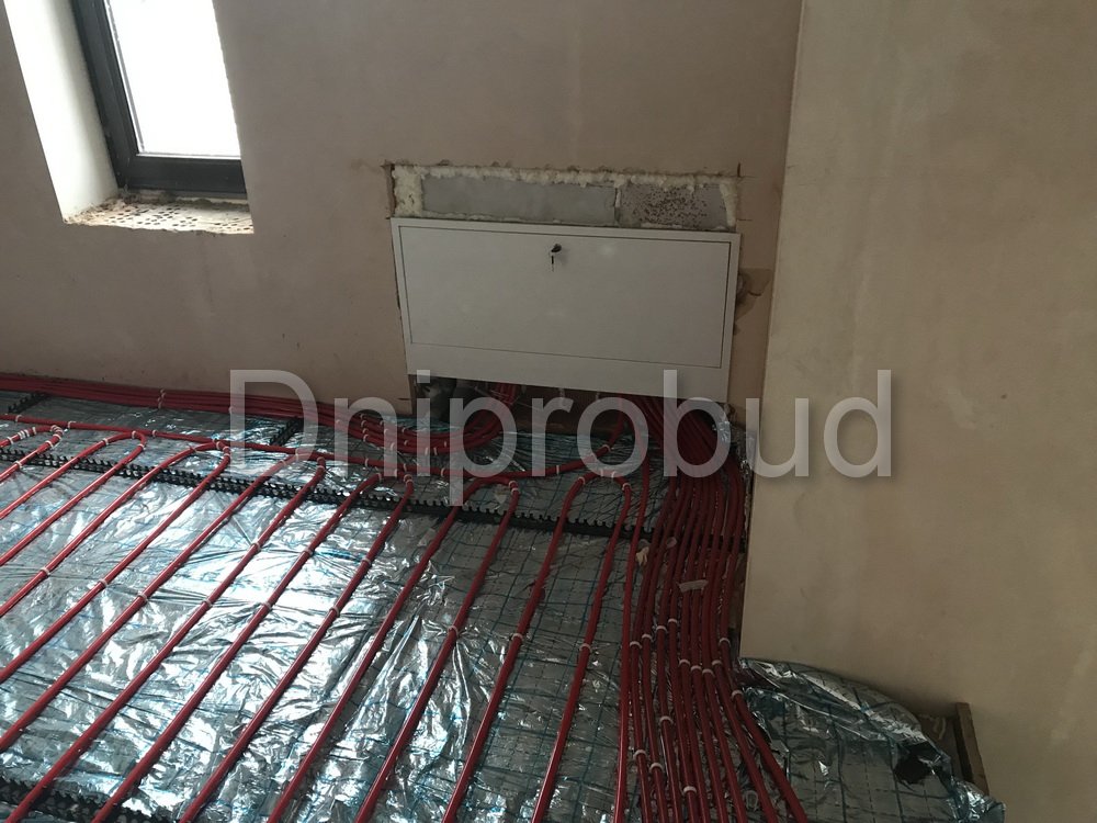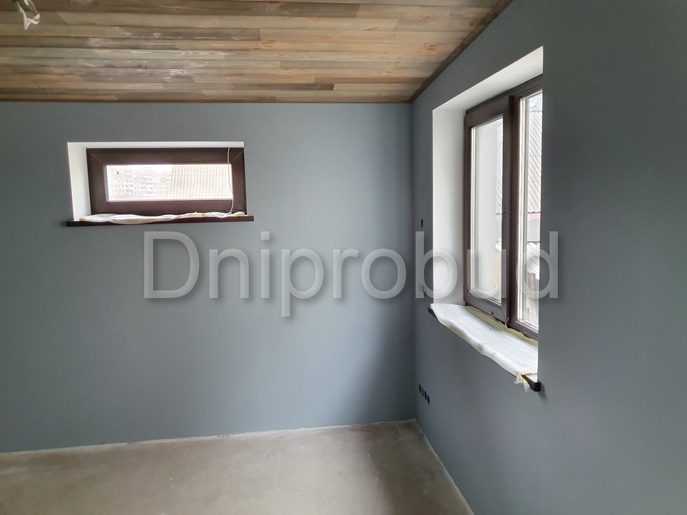 Современный котедж на левом берегу р. Днепр. Строительство осуществлялось на сложных грунтах с высоким уровнем грунтовых вод, что является характерной особенностью данного района г. Днепр. Были проведены работы по обустройству дренажной системы (дренажные трубы, канал из щебня, переливные колодцы). Также проведены дополнительные меры по гидроизоляции фундамента, особенно его цокольной части: гидроизоляция выполнялась наплавлением рубероида, использование для цокольной части фундамента гидротехнического бетона водонепроницаемости W6.