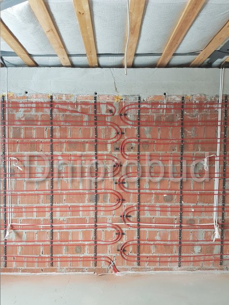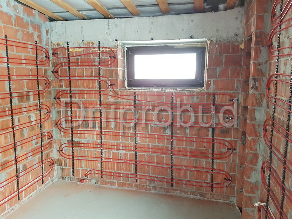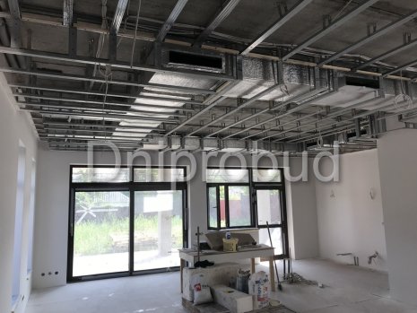 По желанию заказчиков был проведен отказ от использования классических радиаторов в пользу системы теплого пола в тех помещениях, где напольным покрытием является кафель-мрамор. Для комфортного обогрева спален было введено инновационное решение, а именно монтаж системы теплых стен Rehau в помещениях с деревянным напольным покрытием. Вентиляция и кондиционирование всех помещений осуществляется канальными кондиционерами Daikin. Строительство выполнялось по комплексному договору подряда, начиная от геодезических изысканий и проектирования, заканчивая дизайном интерьеров и внутренней отделкой.
