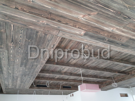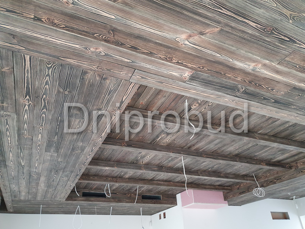 - Крыша односкатная, с малым углом наклона (10 градусов), из-за чего потребовалось использование в конструкции крыши металлических ферм.