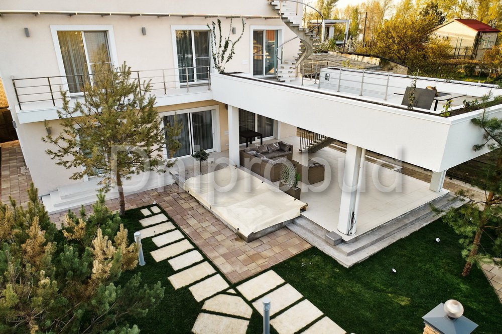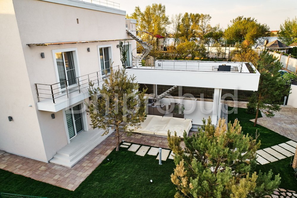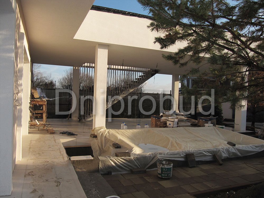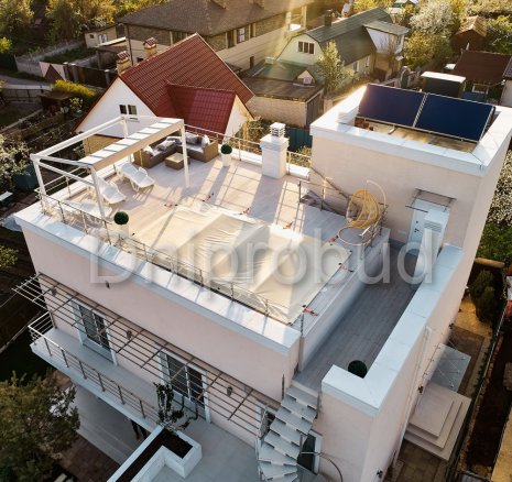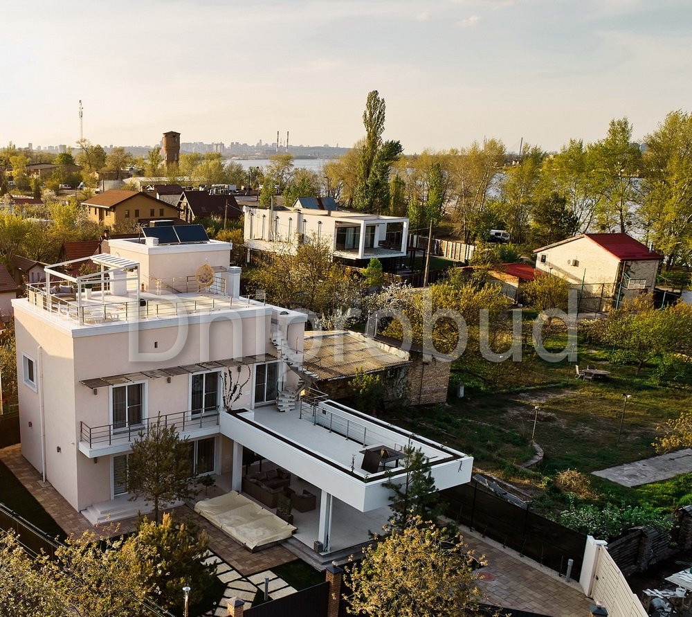 Строительство трехэтажного жилого дома в современном стиле на Острове Водников, Голосеевского района, Киевской области по индивидуально разработанному проекту.