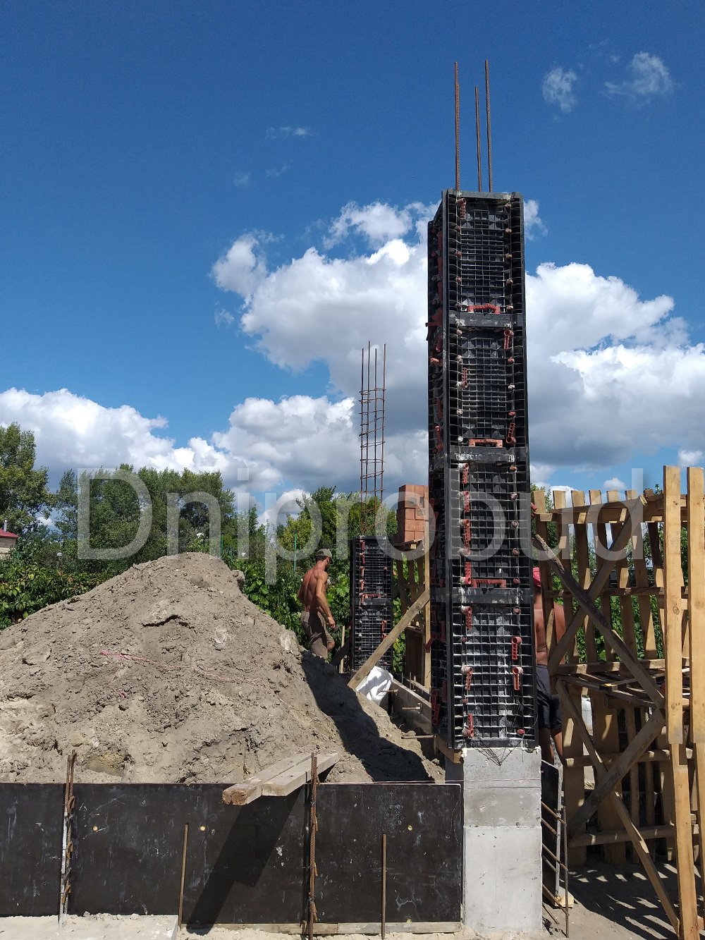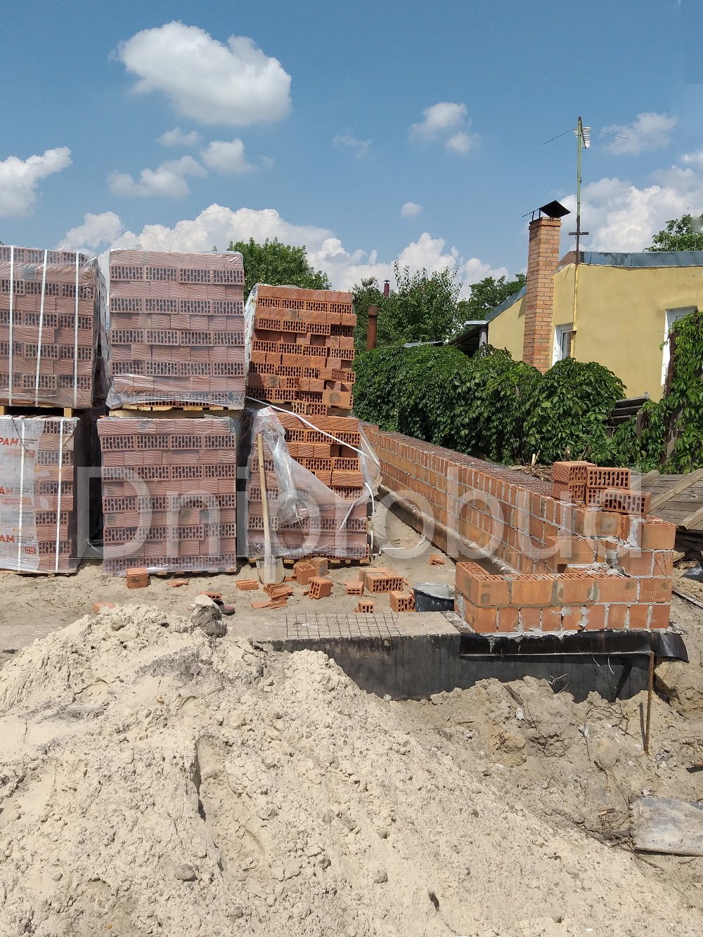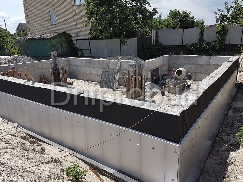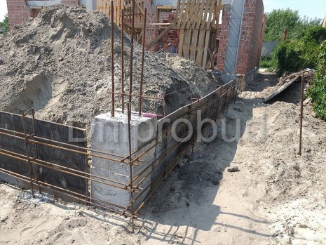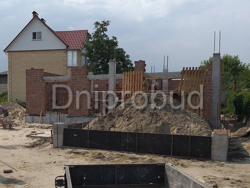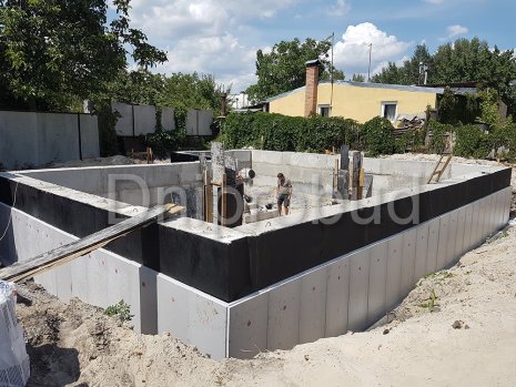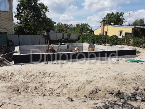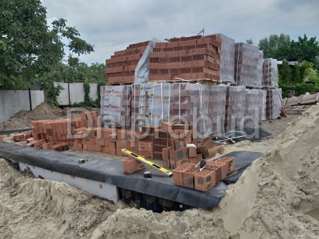 - Для устройства фундамента дома было применено 3 ряда фундаментных блоков. В пятне застройки дома, ранее уже был заложен фундамент другого строения, поэтому было необходимо заглубить фундамент текущего объекта ниже проектной отметки заглубления фундамента предыдущего объекта.