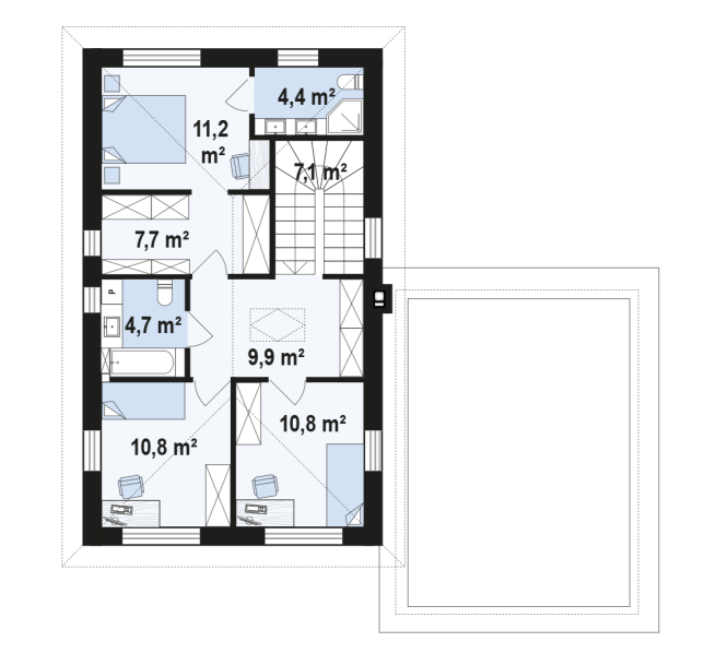 Возможно строительство альтернативных видов кровли, например керамическая плитка, компазитная черепица и т.п., согласно пожеланиям клиента и по подтверждению конструктора.
