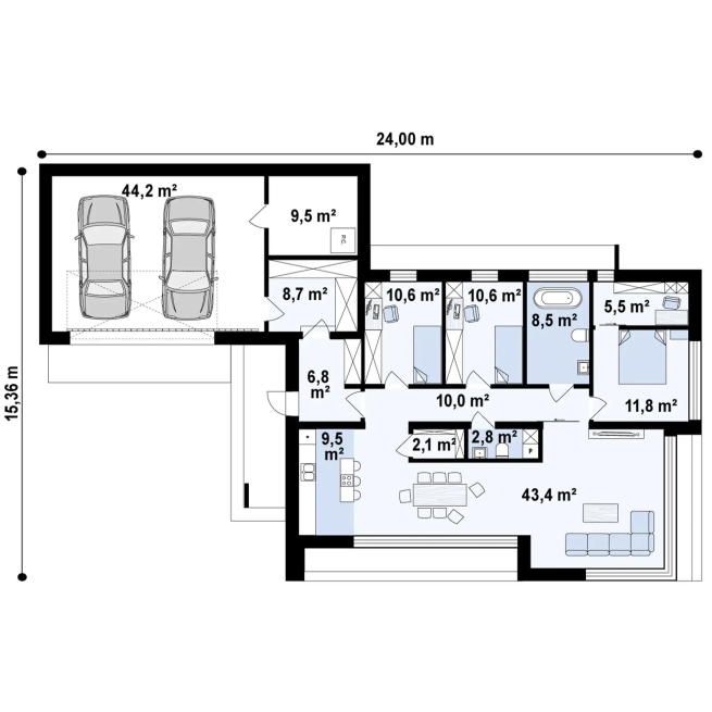 Возможно строительство альтернативных видов фасада, например облицовочный кирпич, вентилируемый фасад и т.п., согласно пожеланиям клиента и по подтверждению конструктора.