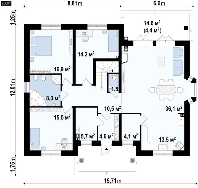 Возможно строительство альтернативных видов кровли, например керамическая плитка, компазитная черепица и т.п., согласно пожеланиям клиента и по подтверждению конструктора.
