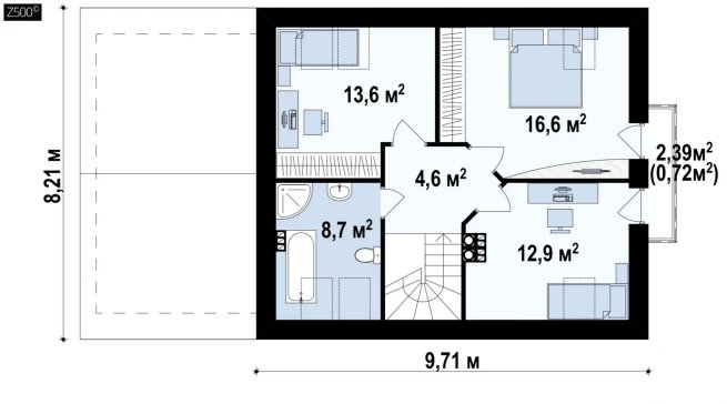 Возможно строительство альтернативных видов кровли, например керамическая плитка, компазитная черепица и т.п., согласно пожеланиям клиента и по подтверждению конструктора.