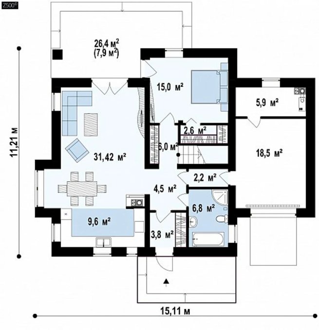 Возможно строительство альтернативных видов кровли, например керамическая плитка, компазитная черепица и т.п., согласно пожеланиям клиента и по подтверждению конструктора.