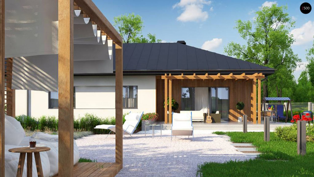 Возможно строительство альтернативных видов кровли, например керамическая плитка, компазитная черепица и т.п., согласно пожеланиям клиента и по подтверждению конструктора.