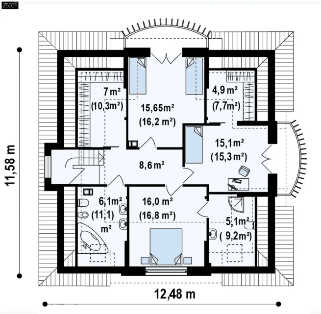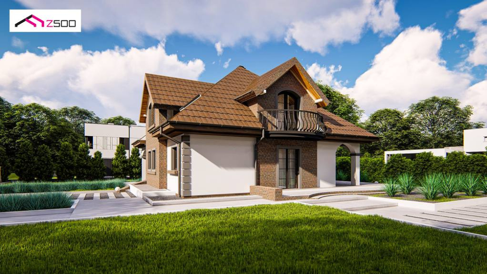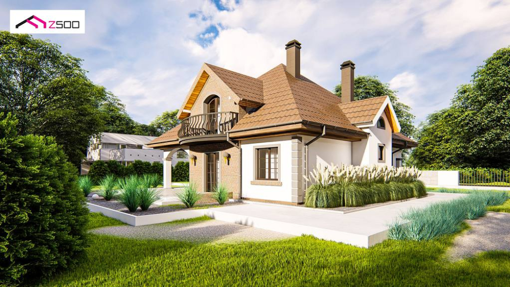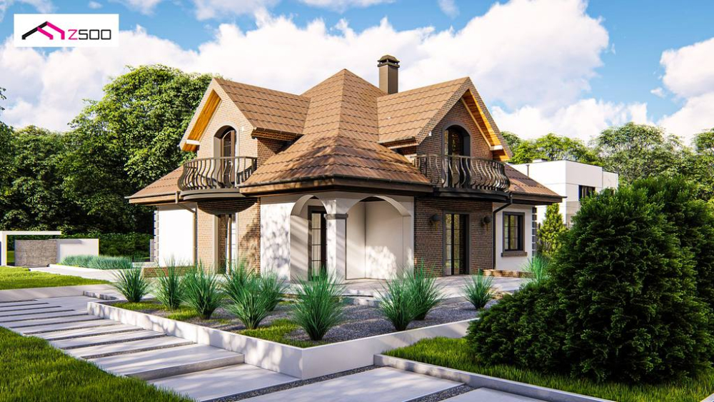 Классический мансардный дом с балконами.