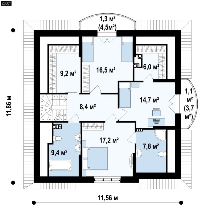 Возможно строительство альтернативных видов кровли, например керамическая плитка, компазитная черепица и т.п., согласно пожеланиям клиента и по подтверждению конструктора.