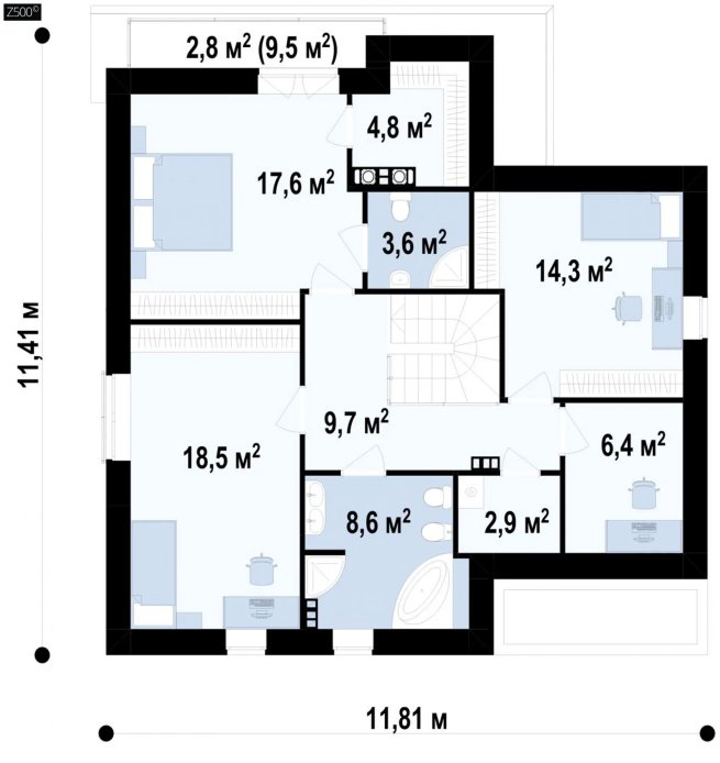 Возможно строительство альтернативных видов кровли, например керамическая плитка, компазитная черепица и т.п., согласно пожеланиям клиента и по подтверждению конструктора.