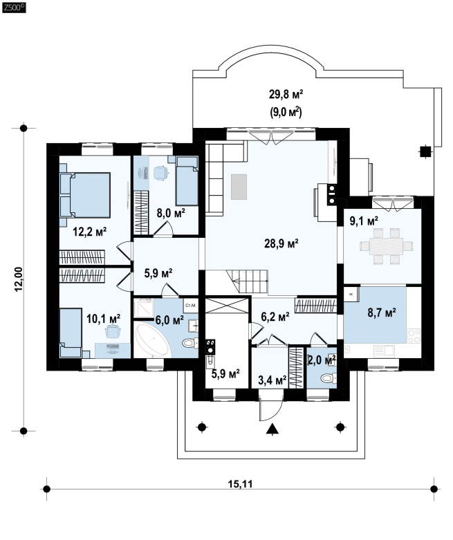 Возможно строительство альтернативных видов кровли, например керамическая плитка, компазитная черепица и т.п., согласно пожеланиям клиента и по подтверждению конструктора.