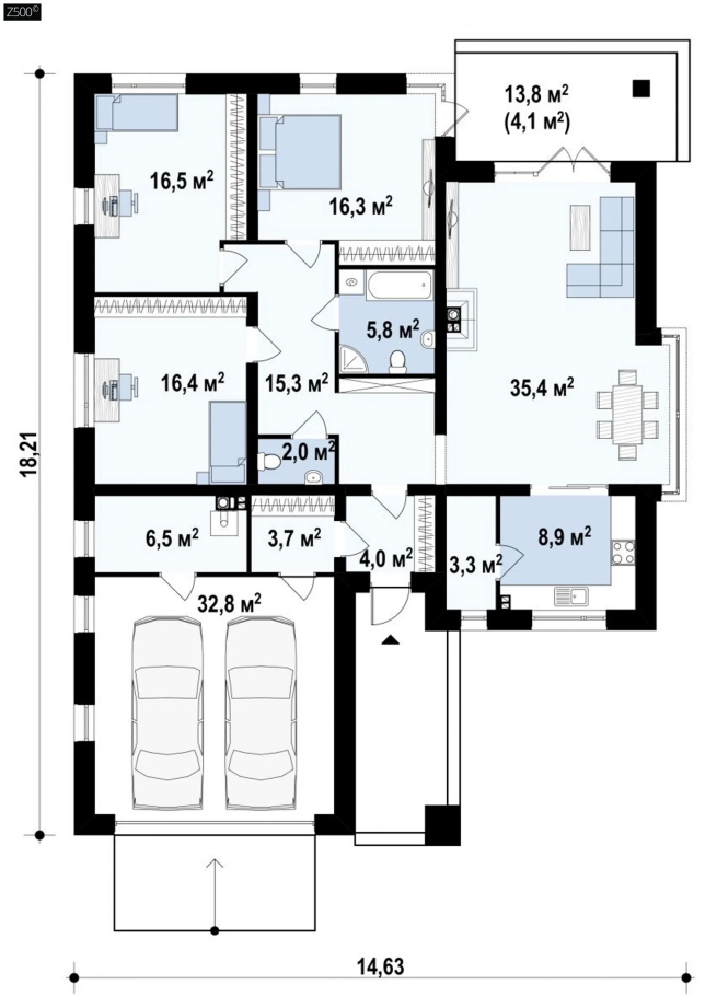 На плоской кровле в течение всей зимы может собраться большой объем снега, частично льдины, которые для конструкции дома опасности не представляют (наши проекты учитывают максимально возможные снежные нагрузки). Но для кровельного покрытия образование льда нежелательно.