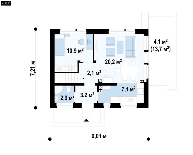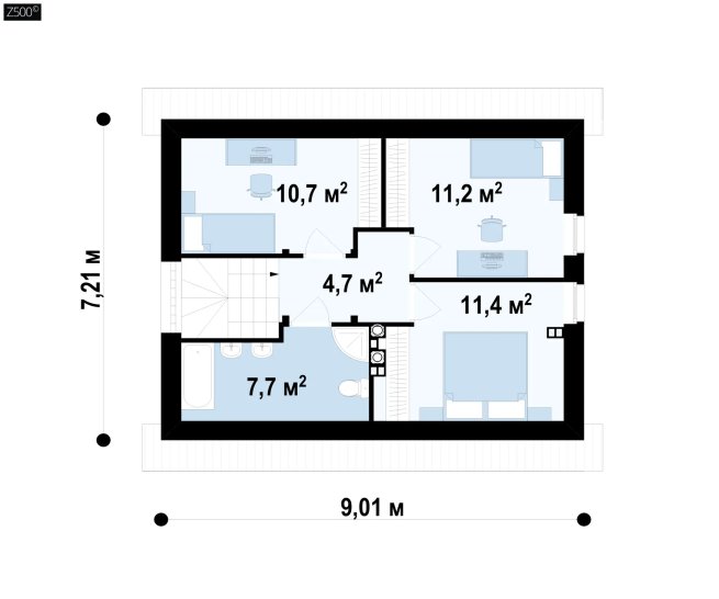 Небольшой дом с мансардой, функциональный и экономичный в строительстве и обслуживании.