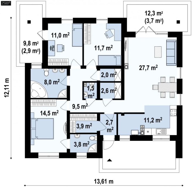 На плоской кровле в течение всей зимы может собраться большой объем снега, частично льдины, которые для конструкции дома опасности не представляют (наши проекты учитывают максимально возможные снежные нагрузки). Но для кровельного покрытия образование льда нежелательно.