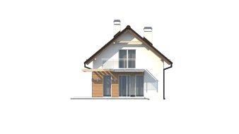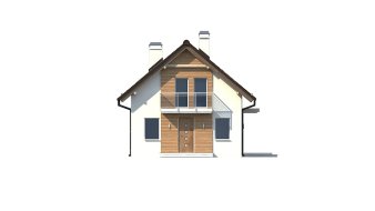 Проект дома с мансардным вторым этажом и двускатной крышей. Компактная, простая форма обогащенная деревянной отделкой фасада придает зданию интересный и современный вид.