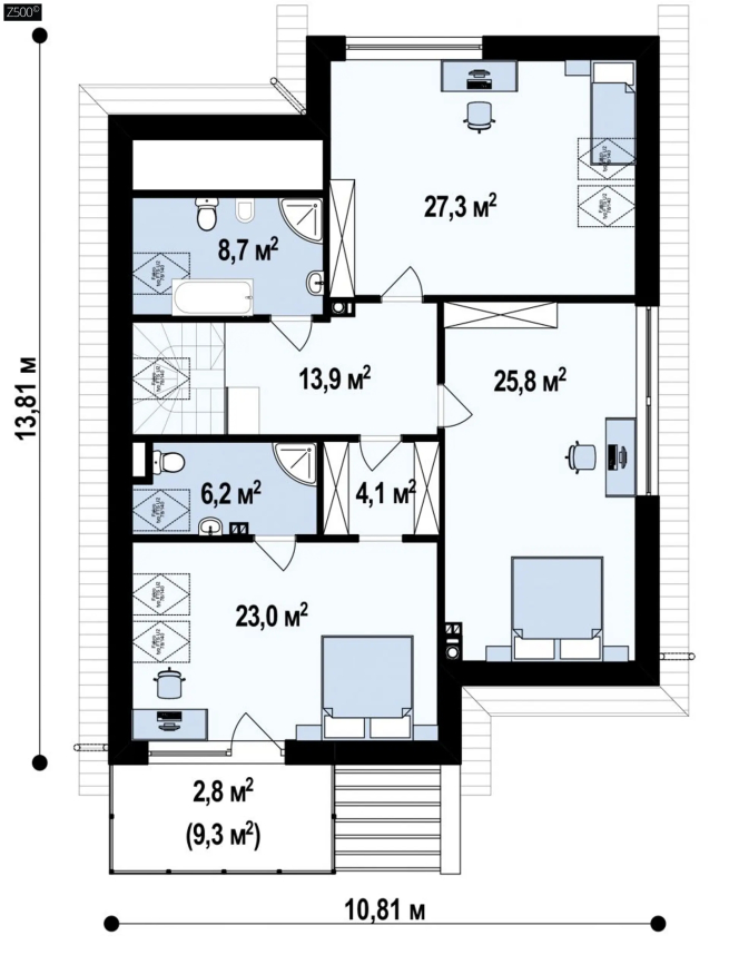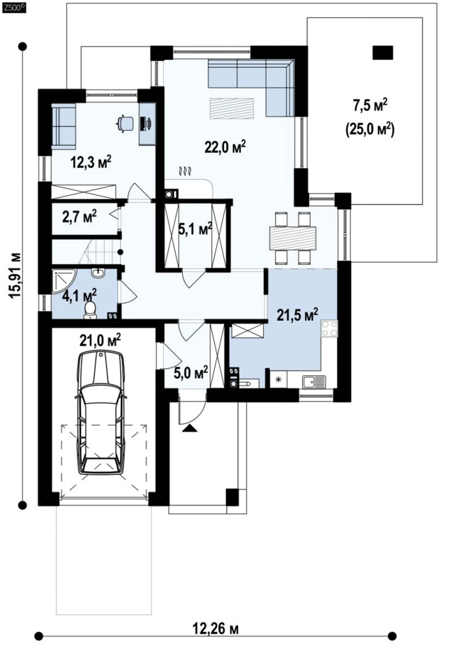 Возможно строительство альтернативных видов кровли, например керамическая плитка, компазитная черепица и т.п., согласно пожеланиям клиента и по подтверждению конструктора.