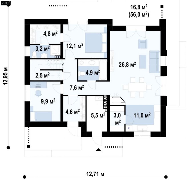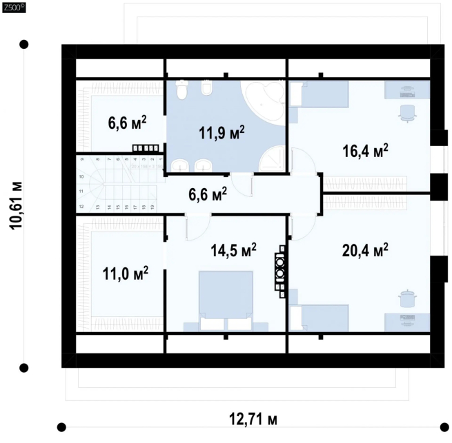 Вариант проекта Z316 с обустроенной мансардой и двускатной кровлей