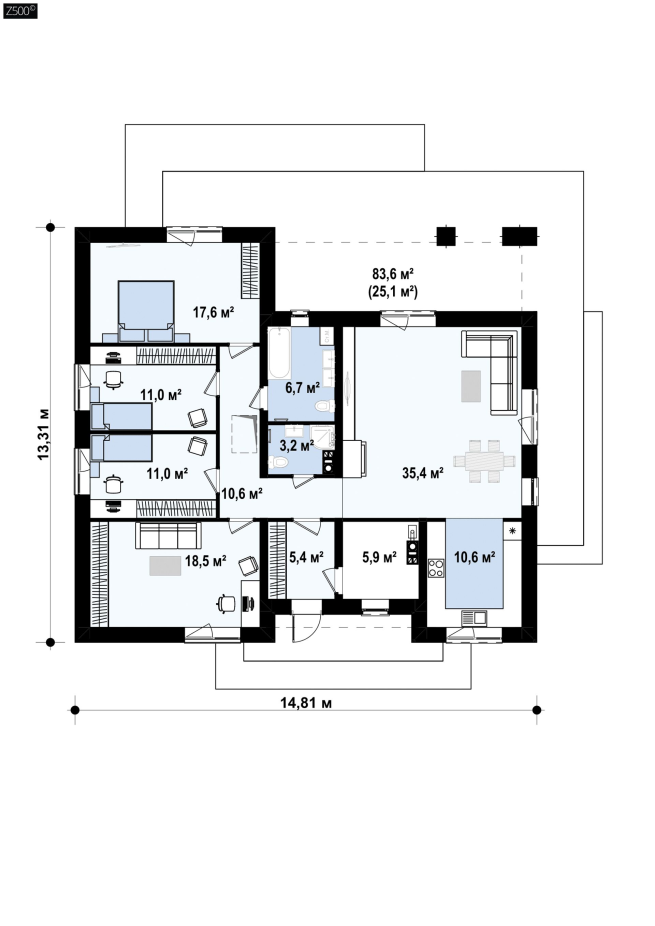 Возможно строительство альтернативных видов кровли, например керамическая плитка, компазитная черепица и т.п., согласно пожеланиям клиента и по подтверждению конструктора.