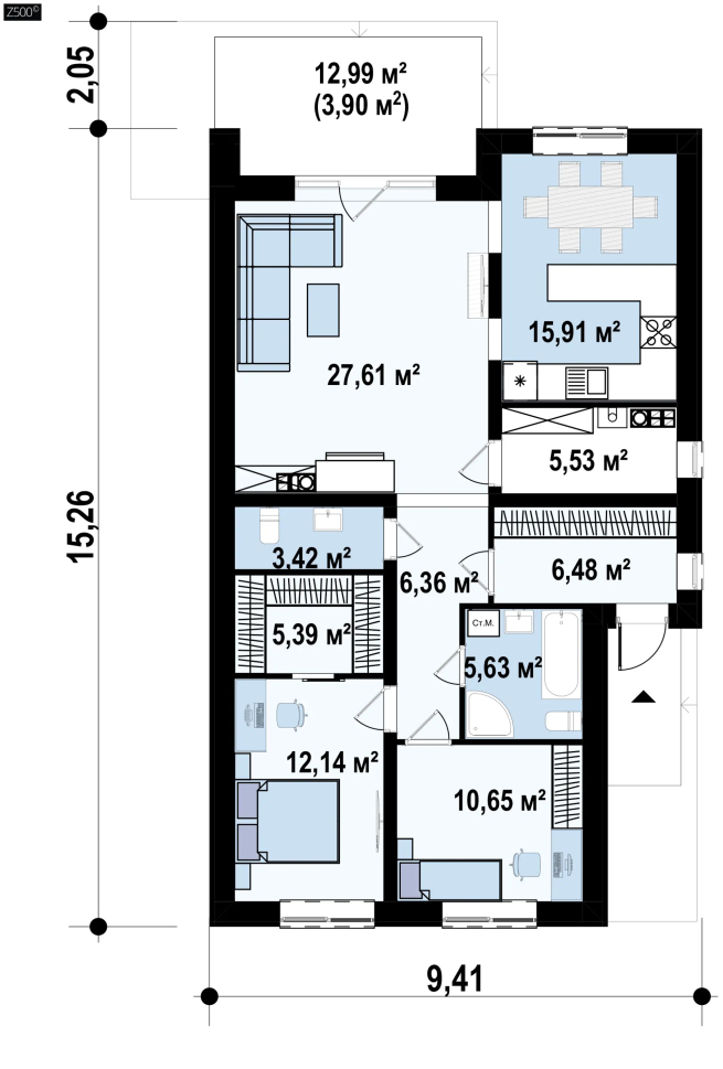 Возможно строительство альтернативных видов кровли, например керамическая плитка, компазитная черепица и т.п., согласно пожеланиям клиента и по подтверждению конструктора.