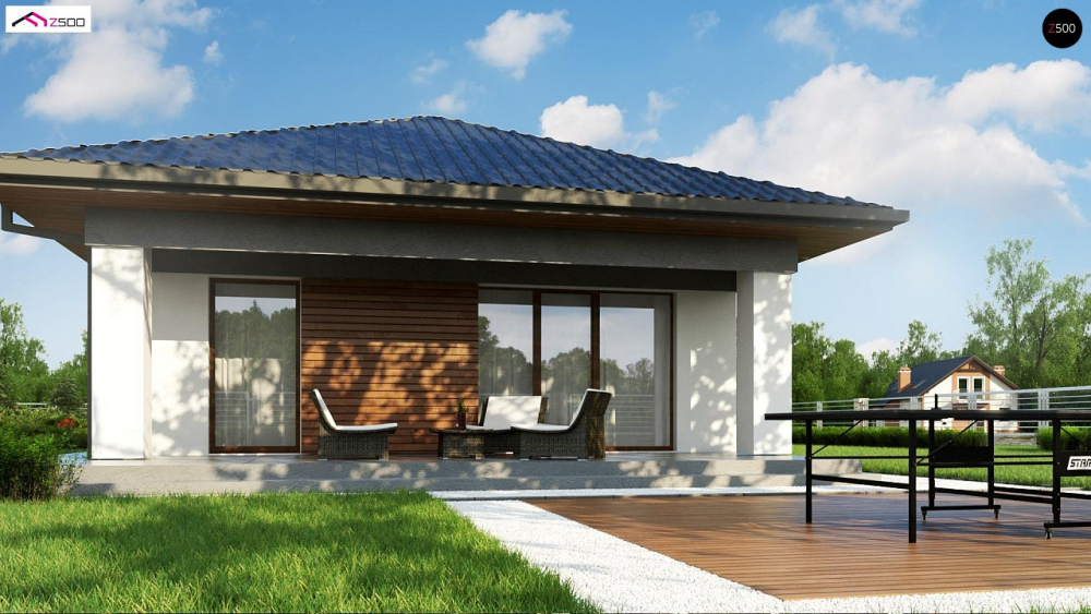 Возможно строительство альтернативных видов кровли, например керамическая плитка, компазитная черепица и т.п., согласно пожеланиям клиента и по подтверждению конструктора.