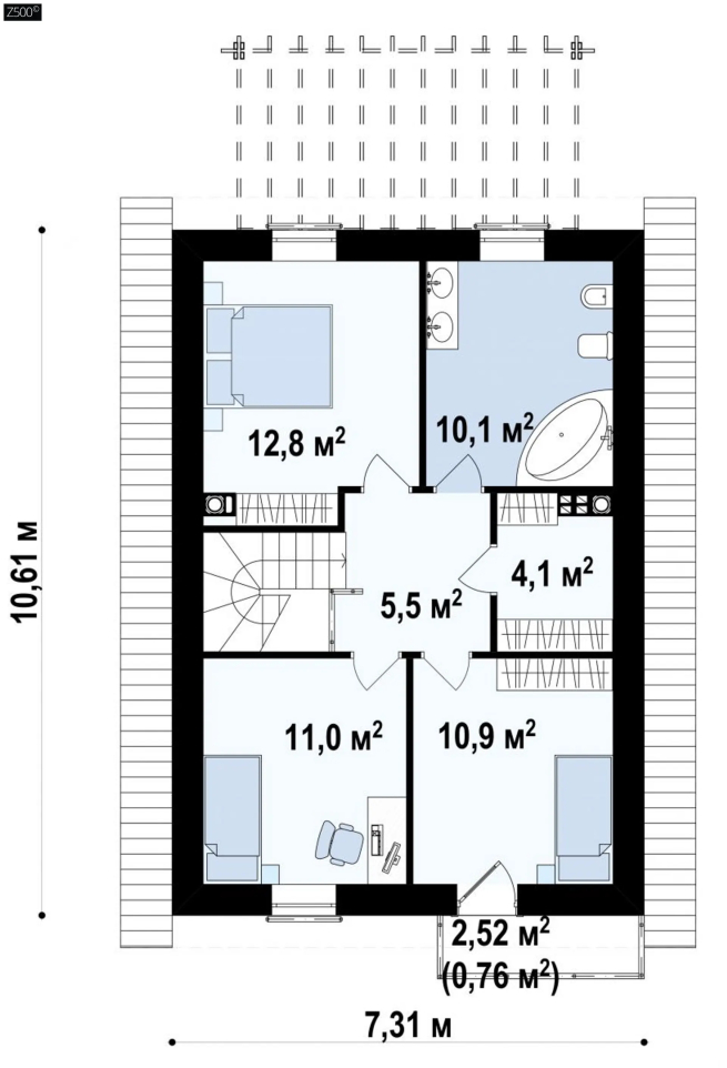 Возможно строительство альтернативных видов кровли, например керамическая плитка, компазитная черепица и т.п., согласно пожеланиям клиента и по подтверждению конструктора.