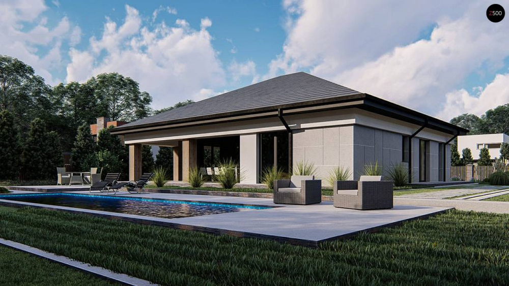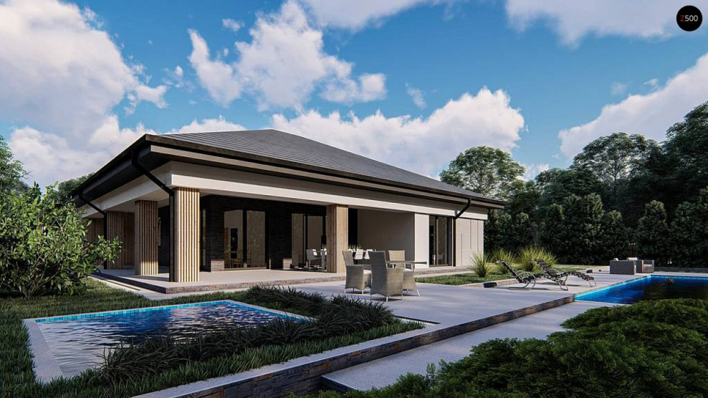 Возможно строительство альтернативных видов кровли, например керамическая плитка, компазитная черепица и т.п., согласно пожеланиям клиента и по подтверждению конструктора.
