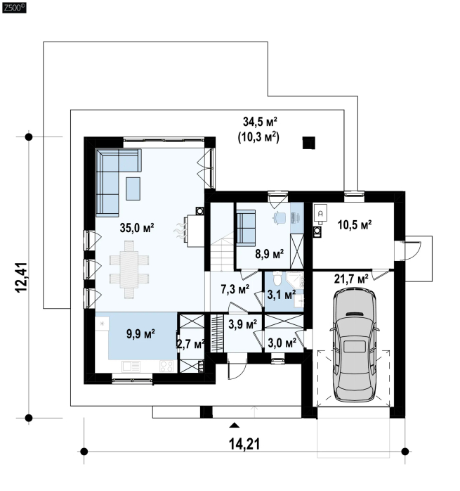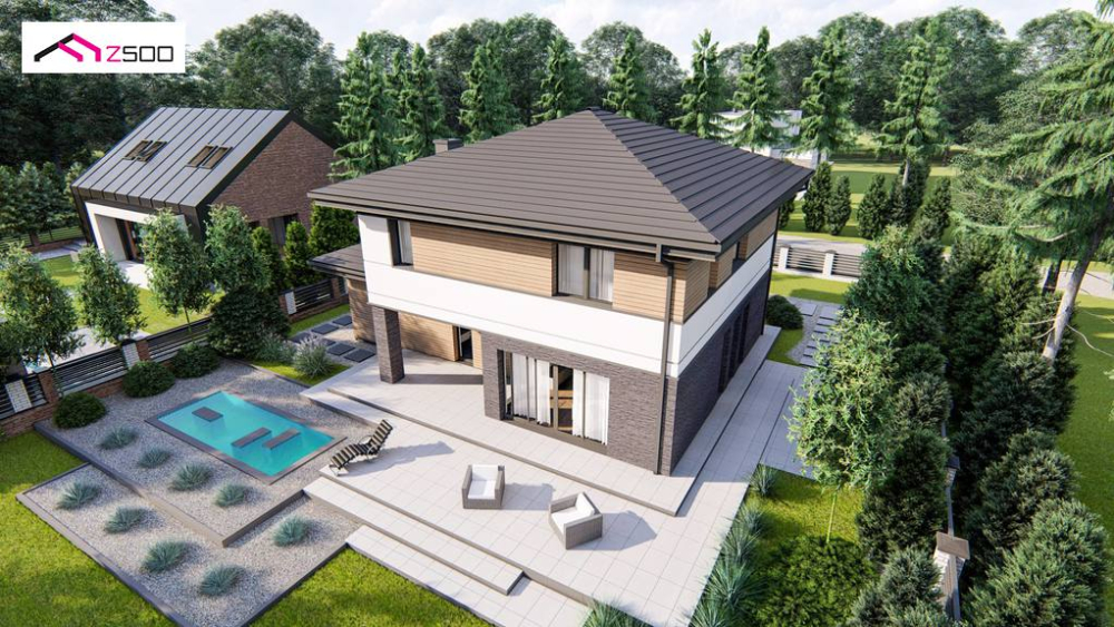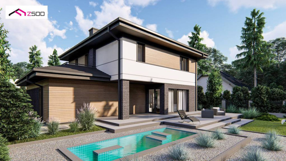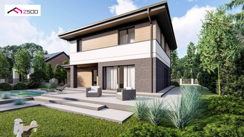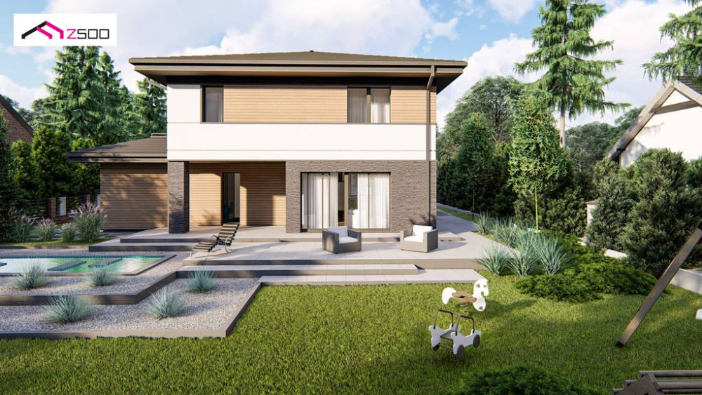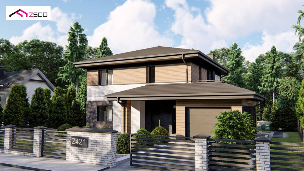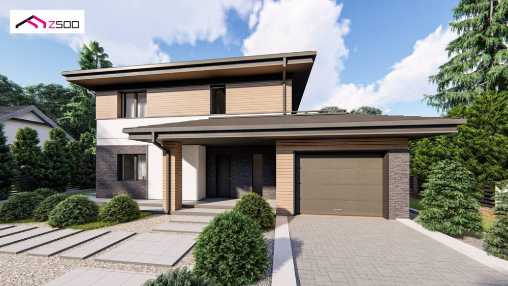 Современный двухэтажный проект дома Z421 с гаражом на одну машину
