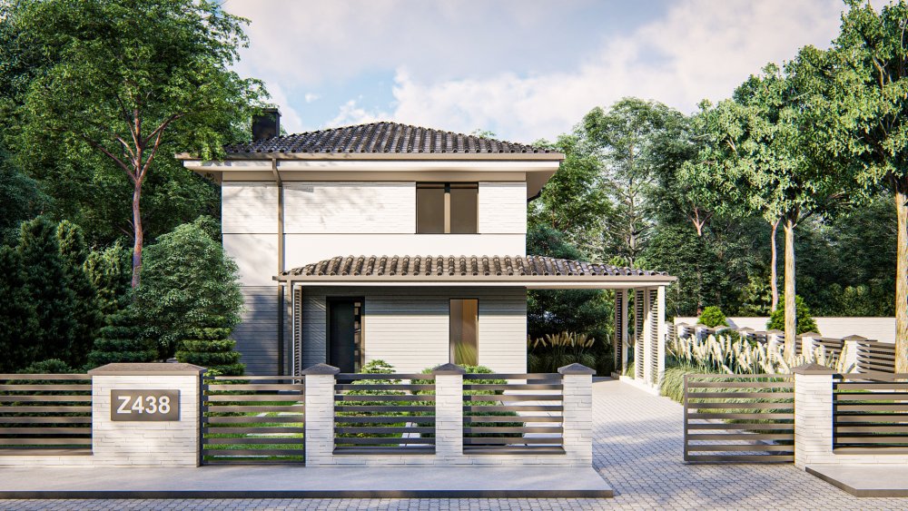 Двухэтажный проект дома с современным обликом и 4-х скатной крышей