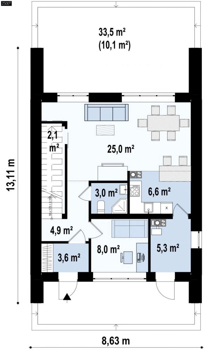 Возможно строительство альтернативных видов кровли, например керамическая плитка, компазитная черепица и т.п., согласно пожеланиям клиента и по подтверждению конструктора.