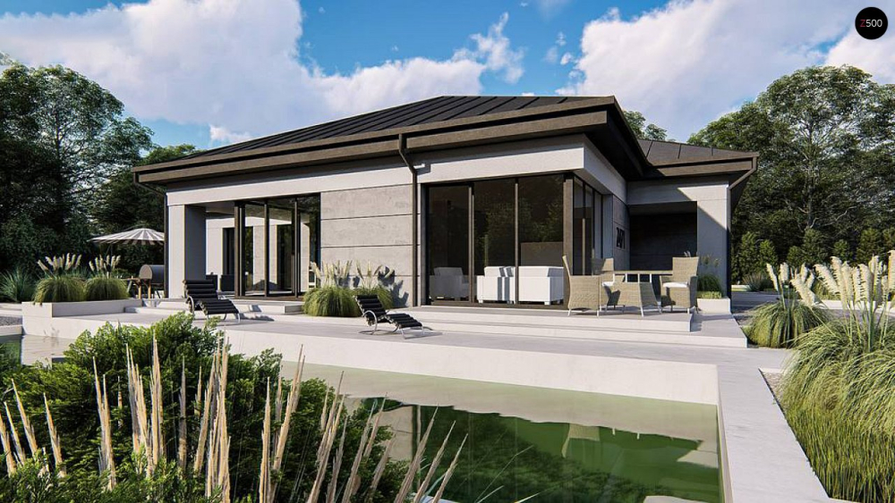 Возможно строительство альтернативных видов кровли, например керамическая плитка, компазитная черепица и т.п., согласно пожеланиям клиента и по подтверждению конструктора.