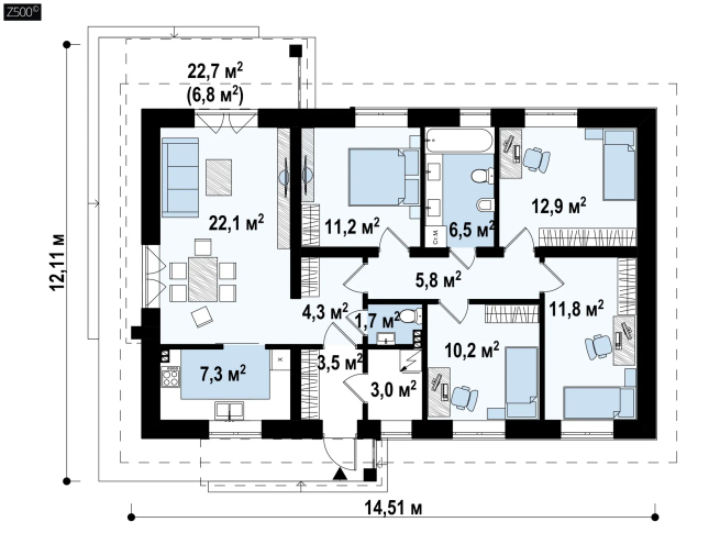 Вариант одноэтажного дома Z473 с электрическим котлом
