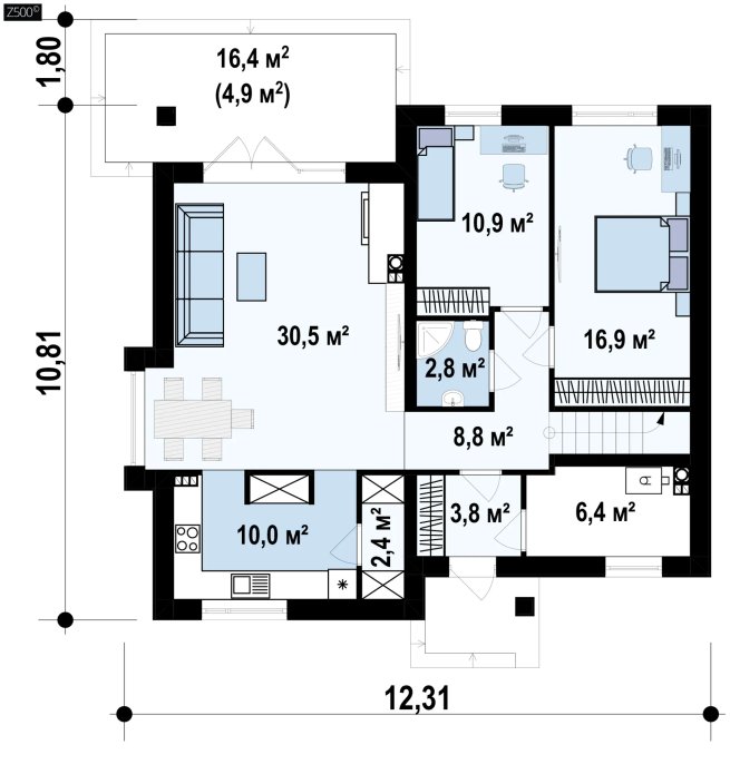 На плоской кровле в течение всей зимы может собраться большой объем снега, частично льдины, которые для конструкции дома опасности не представляют (наши проекты учитывают максимально возможные снежные нагрузки). Но для кровельного покрытия образование льда нежелательно.