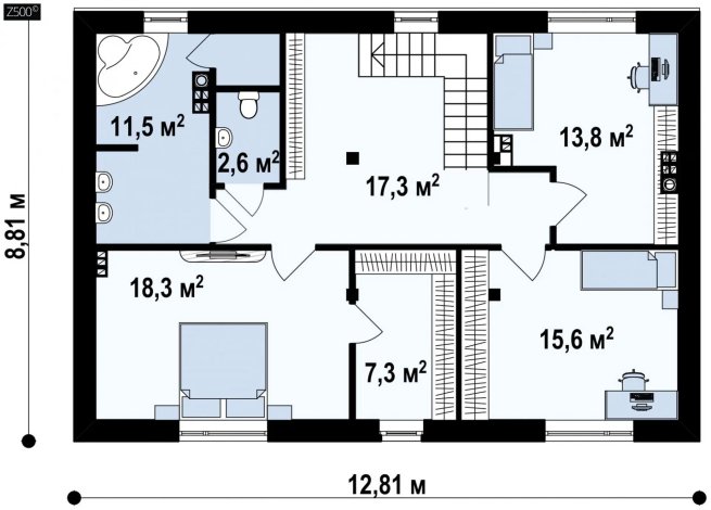 Возможно строительство альтернативных видов кровли, например керамическая плитка, компазитная черепица и т.п., согласно пожеланиям клиента и по подтверждению конструктора.