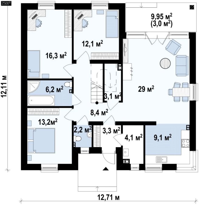 Возможно строительство альтернативных видов кровли, например керамическая плитка, компазитная черепица и т.п., согласно пожеланиям клиента и по подтверждению конструктора.