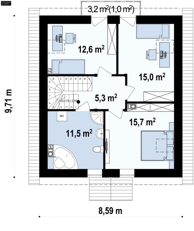 • Узлы - устройство перемычки, коньковый гребень, примыкание к дымовой трубе, подшивка кровли, армирование террасы, опирание перегородок на плиту пола 1-го этажа.