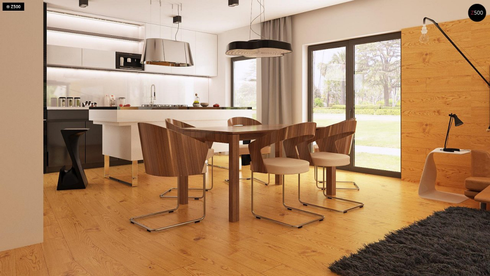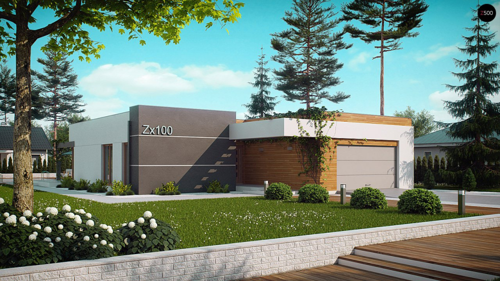 Современный дом с гаражом в стиле модерн.