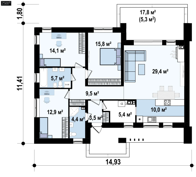 На плоской кровле в течение всей зимы может собраться большой объем снега, частично льдины, которые для конструкции дома опасности не представляют (наши проекты учитывают максимально возможные снежные нагрузки). Но для кровельного покрытия образование льда нежелательно.