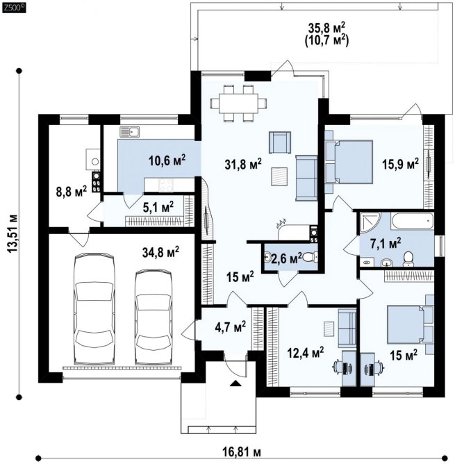 Возможно строительство альтернативных видов кровли, например керамическая плитка, компазитная черепица и т.п., согласно пожеланиям клиента и по подтверждению конструктора.