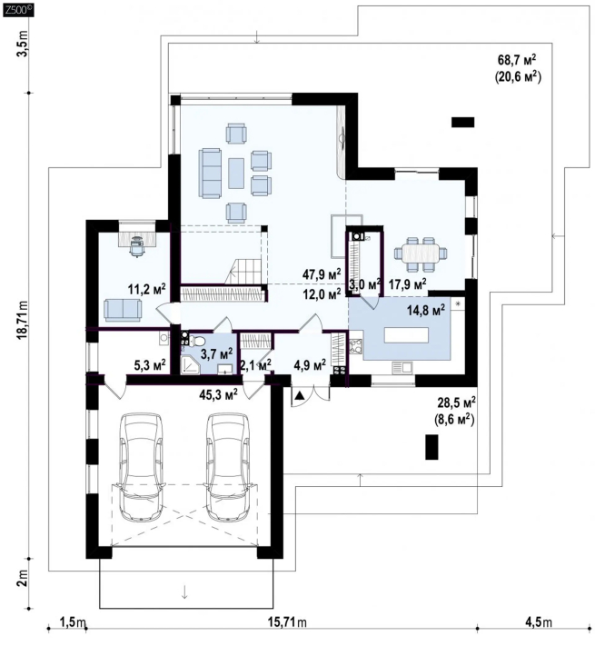 Возможно строительство альтернативных видов кровли, например эксплуатируемая кровля для зеленых зон, террас, бассейнов и т.п., согласно пожеланиям клиента