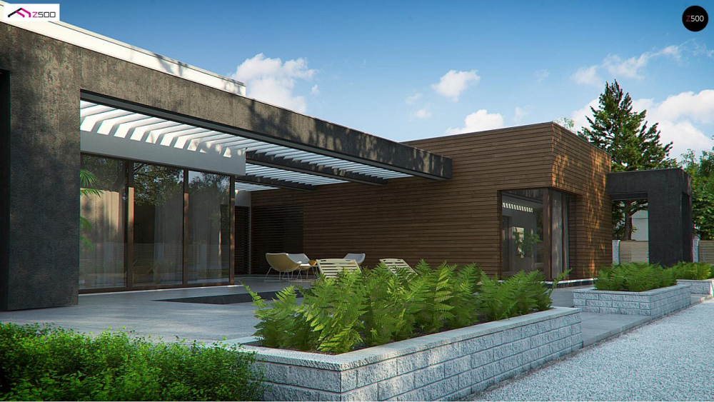 Дом с террасой которая объединяет все комнаты
