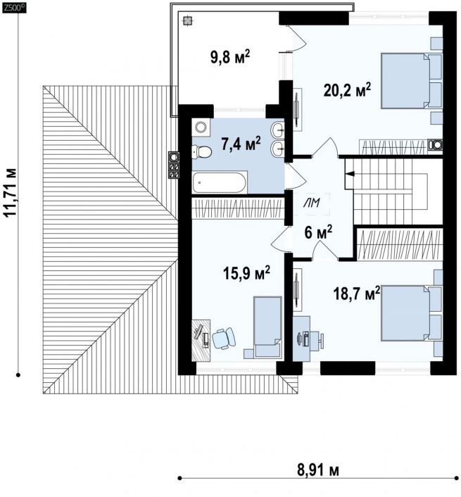 Возможно строительство альтернативных видов кровли, например керамическая плитка, компазитная черепица и т.п., согласно пожеланиям клиента и по подтверждению конструктора.