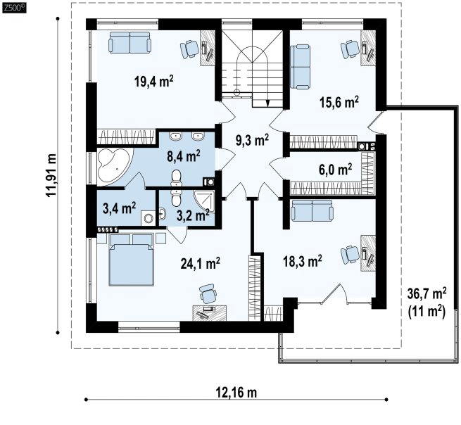 Возможно строительство альтернативных видов кровли, например керамическая плитка, компазитная черепица и т.п., согласно пожеланиям клиента и по подтверждению конструктора.
