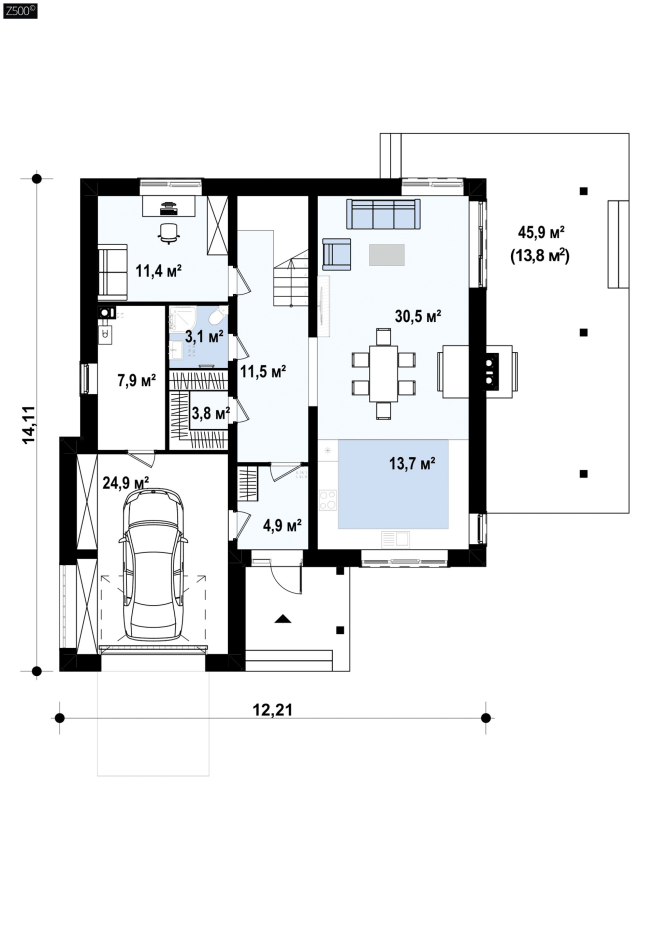 На плоской кровле в течение всей зимы может собраться большой объем снега, частично льдины, которые для конструкции дома опасности не представляют (наши проекты учитывают максимально возможные снежные нагрузки). Но для кровельного покрытия образование льда нежелательно.
