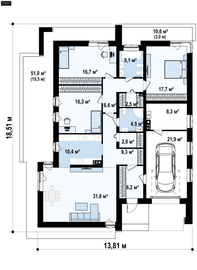 Одноэтажный дом с гаражом – современный дизайн, плоская крыша