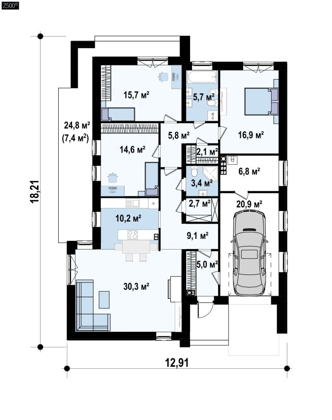 Современный стиль, один этаж, удобная планировка - все это проект Zx49 MINUS