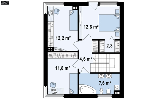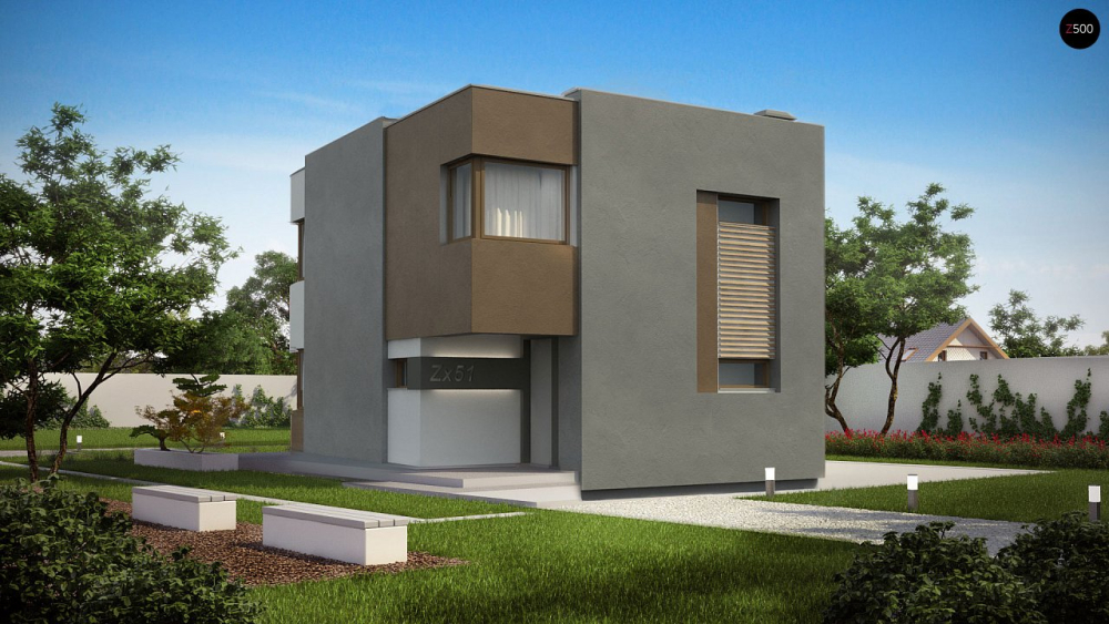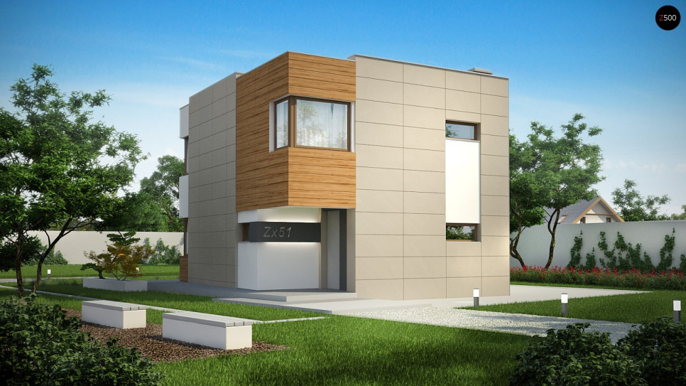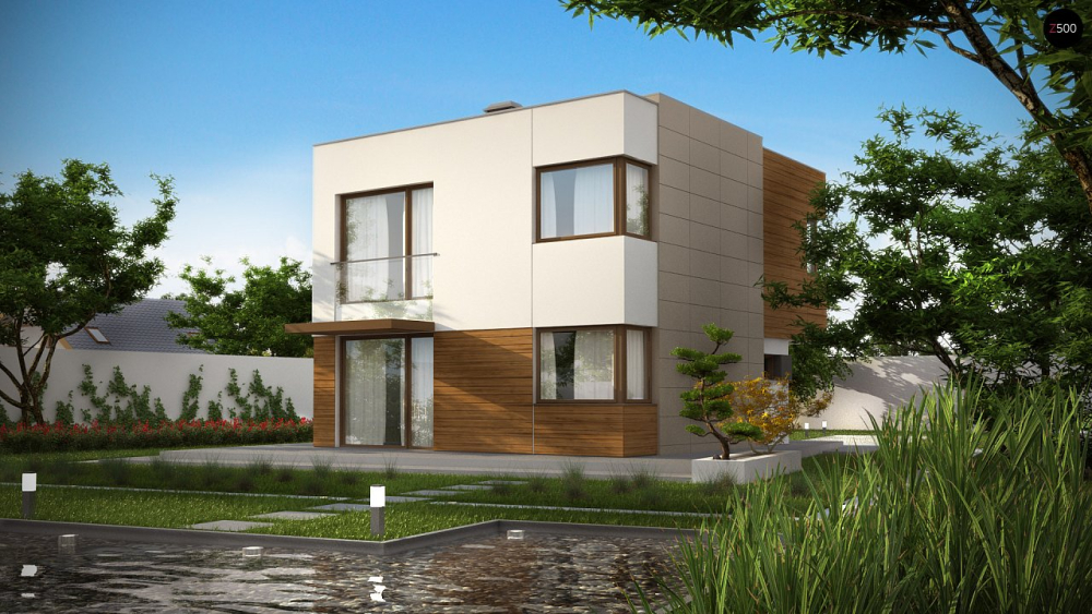 Современный комфортабельный дом простой формы с тремя спальнями на втором этаже