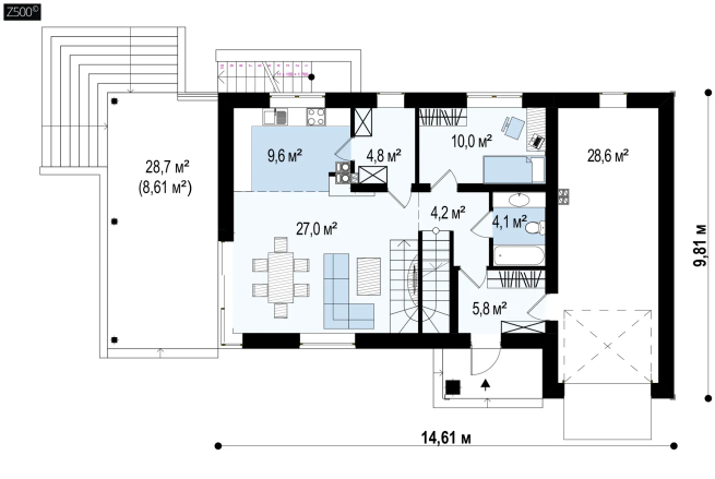 Возможно строительство альтернативных видов кровли, например керамическая плитка, компазитная черепица и т.п., согласно пожеланиям клиента и по подтверждению конструктора.