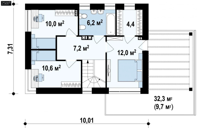 Подвариант проекта дома Zx63 с плитами перекрытия
